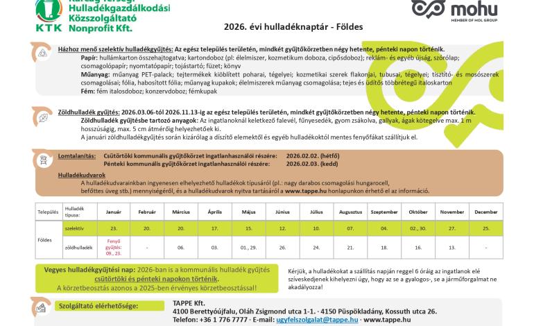 2026. évi hulladéknaptár